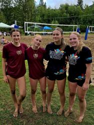 Taylor R., Jacklyn V., Jolene A., and Blake R. from our U14 Girls Blue team are competing today at a beach volleyball tournament in Fernie — taking their skills from the court to the sand.